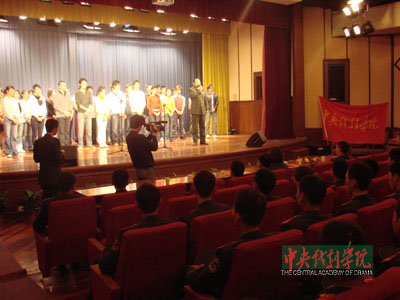 11月2日下午,由我院学生党总支部第一学生党支部的大部分学生党员和各系入党积极分子组成的一支文艺演出队,来到天安门武警支队,为武警官兵们奉献了一场精彩纷呈的慰问演出。