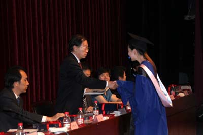 上午9时,毕业典礼正式开始。学院领导分别宣读了博士后出站名单、授予博士、硕士、学士学位者名单,本、专科毕业生名单和优秀毕业生名单、支援西部学生名单及北京地区高校应聘村党支部书记助理与村主任助理毕业生名单。徐翔院长为授予博士、硕士学位者拨流苏。学生代表们先后走上主席台,从院领导手中接过毕业证书、学位证书。