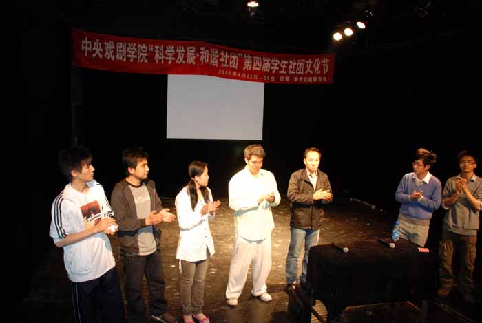 这是一场年轻人的聚会,这是激情与活力的碰撞,这是对过去的总结,也是对未来的展望。社团文化节把一群有着共同爱好的大学生凝聚到一起。以“科学发展·和谐社团”为主题的社团文化节闭幕式在北区黑匣子如期举行,和谐的光线明暗,协调的人文气氛,让每一位到场的学生感到置身于一个和睦的大家庭的融洽与温馨。随着主持的开场白,开始了本届文化节的最后一次活动——社团文化节闭幕式暨魔法之夜演出。