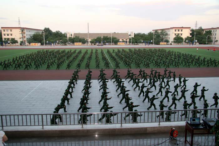 军训期间,军姿军容、队列队形、内务卫生、理论学习、请假制度实行一切行动军事化。12天的军营生活,参训学生在吃苦中学到的团结,踏步中培养的默契,拉歌中增进的友谊,竞争中学会的进取,使这群从起初那些平白娇生惯养,假期里懒散度日的孩子,成长为了一个个坚毅、严谨、友爱的大学生。