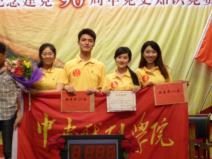 为庆祝中国共产党建党90周年,更好地学习党的历史和知识,重温建党90年来的风雨历程和辉煌成就,学院积极响应党组织号召,组织学生参与“学习党史、坚定信念”的活动。5月26日,在学生处团委老师的带领下,我院部分学生赴北京第二外国语学院参加北京高校东南片区党史知识竞赛活动。参加此次竞赛的学校还有北京工业大学、北京物资学院、北京协和医学院、首都经济贸易大学、中国传媒大学和北京第二外国语学院。
